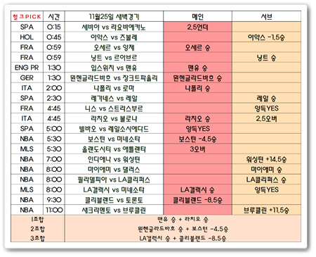 11월27일 피라미즈 해외축구분석